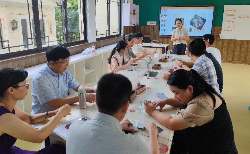 首先,杜丽君校长给大家介绍了瓯海区学生实践学校发展情况和特色课程,学校的彩石镶嵌、瓯塑、玻璃银光刻等传统非遗课程,展现了百工之乡的温州特色,师生共同参与的作品展示架制作、吸顶式LED灯教具和教室文化布置,体现了学校以生为本和务实求新的教学思想。金色九月,秋韵荡漾,美丽的瓯海区学生实践学校色彩斑斓、清新宜人,精致典雅的校园文化,无不给人以自然魅力和知识力量。