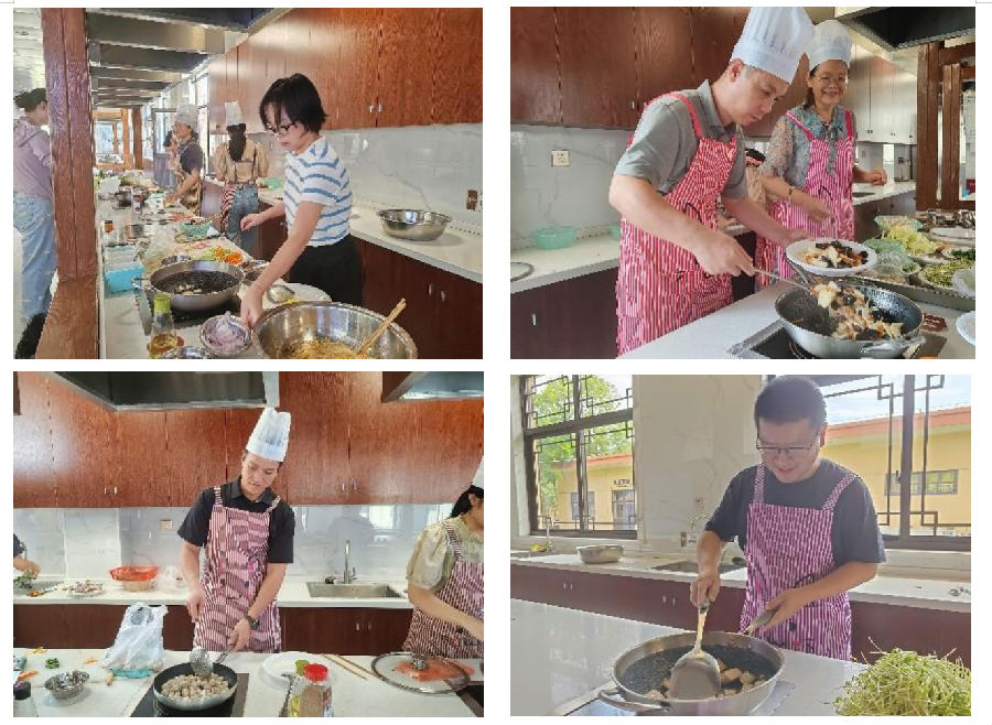 然后,进入“瓯菜”实践环节。参与活动的人员作为“学生”并分为两组,每组有自己的食材,在经过紧张忙碌的美食制作后,一盘盘色香味俱全的美食映入眼帘,让人食欲大增。通过亲自动手和美食品鉴,学员们对“瓯菜”的文化特色及其课程建设有了更深入理解。