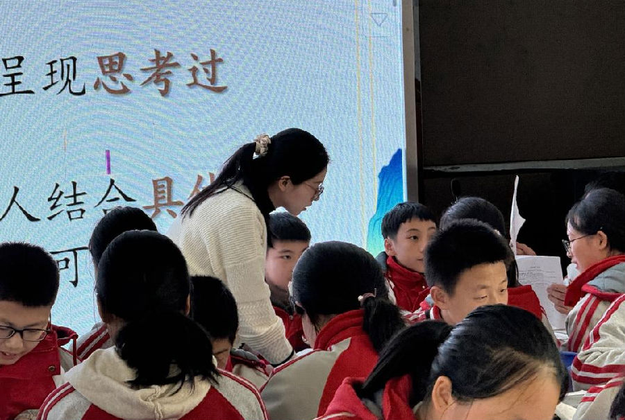 11月22日下午,仙岩二中吴如意老师带来《小圣施威降大圣》。上课伊始,同学们围绕课前梳理的思维导图,以“变”串联起小说情节,声情并茂地复述故事内容。吴老师聚焦“圣”字,通过默读课文,勾画关键语句,让学生在同伴分享中领会二圣的神通广大。继而,吴老师引用鲁迅的评述,指出二圣不只有“神”的一面,都是丰富多面的形象,由此深入文本,聚焦人物言行、心理,挖掘“神性”以外的“猴性”与“人性”。至此,学生对二圣的形象有了更深入的认识。吴老师乘胜追击,转向聚焦“降”字,跳脱单篇,关联目录,为学生打通整本书阅读的有效路径。