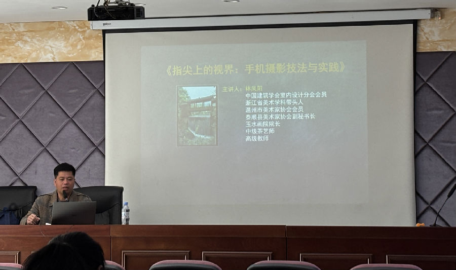 活动伊始,林凤阳老师以手机拍摄详细操作演示开始,指导大家利用手机镜头玩创“艺”,结合他多年的摄影经验,通过花卉、静物、风光等内容的拍摄技巧,用通俗易懂、简明扼要的语言,以个人作品为例,为现场教师们带来了一堂内容丰富、生动精彩的摄影课程。讲座既有理论深度,又有经验干货,既有拍摄技法,又有创作思路,现场氛围十分活跃。