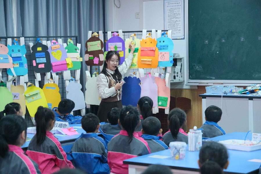 第一节课由平阳县万全镇郑楼小学的陈梦娴老师带来《我的书包》第一课时研讨课。她通过创设情境、激发兴趣、任务驱动等教学环节,让学生们在自由创作的过程中充分展现了自己的想象力和创造力。学生们在课堂上积极参与,相互合作,创作出了许多富有创意和个性的作品。