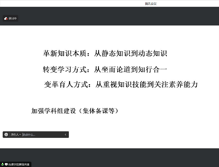 晚上,杭州市富阳区富春第四小学的练倩宇老师为大家带来《用系统思维观照新教材带来的教学新变化》讲座,练老师从新课标中的艺术实践图示展开,四类实践领域,16项具体学习内容,五大任务群20项学习任务是我们教学实践的准则与方向。再看新教材,在内容编排上更加注重知识的系统性和连贯性,在主题选择上更多元更关注中国传统文化。同时,通过具体课例的解读,对我们在新教材的实践探索中有了启示。