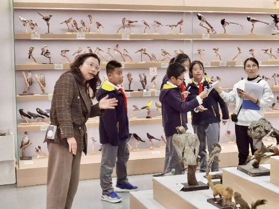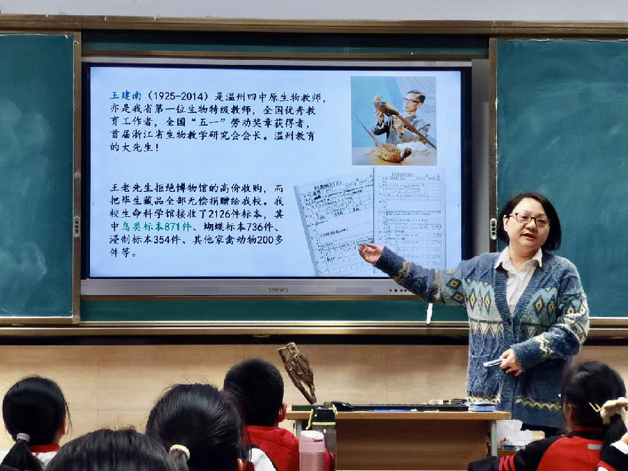 下午,活动在温州第四中继续进行,学员们迎来了两场精彩的课堂展示。温州市籀园小学的薛海珍和温州市实验小学程茜剡老师带领学生们走进王建男鸟类标本馆,两位老师精进设计活动,一步一步引导孩子们,通过找关键特征,找出了场馆的鸟类代言人。学生通过现场的场馆学习,走进了奇妙的《探索鸟类标本的趣味之旅》,了解了《标本下的自然之美》让学生们深刻感受到了鸟类世界多样以及环境保护的意义,开创了场馆类教学的示范先河。