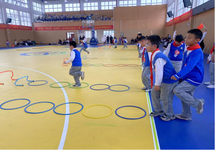 第一堂课由永嘉县上塘中塘小学的金益芳老师带来的主题为《行进间连续跳跃技巧:单双脚连续跨越障碍》课。在富有趣味的队列练习和热身操开场,逐步引导学生进入学习状态。教学内容从简单的单脚连续跳圈、低架开始,逐渐过渡到单脚或双脚连续跳高架,最终达到双脚连续跳体操点的难度,层层递进。通过不同距离和高度的连续跳跃训练,学生学会了调整步幅和步频等技巧。这一过程不仅培养了学生勇于挑战困难的意志品质,还通过小组合作学习的方式增强了他们的团队合作意识,从而提升了学生的体育品德。