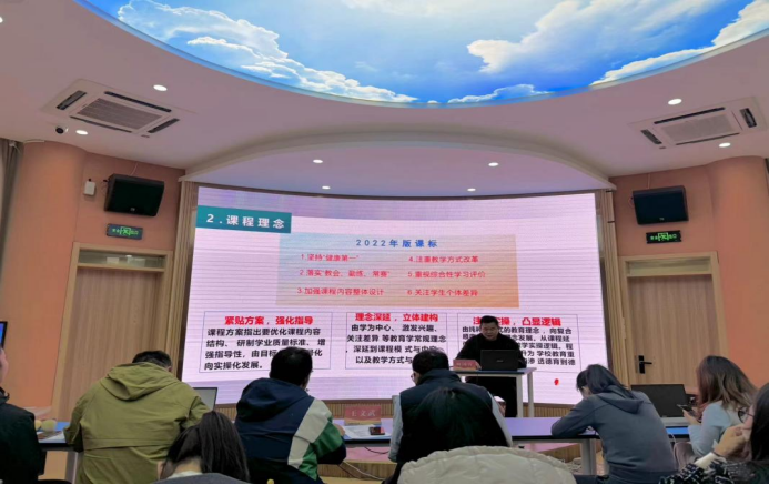 下午的活动由永嘉县瓯北第七小学麻国方老师带来专题讲座《体育与健康跨学科主题学习的实践与思考》,麻老师以课程标准为出发点,结合2011版与2022版课程标准的变化,对新课标中的新要求进行解读。其次就跨学科主题学习的实施路径做了全面的阐述:结合相应的实例从学习主题的选取,核心任务的设计,素养目标的制订,多学科融合为抓手,实施方式的转变五个方面,给全体老师做了详细的分析。