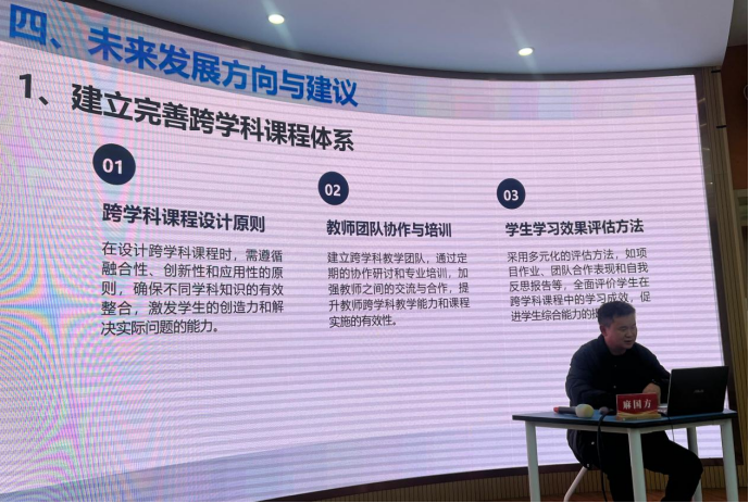 最后麻老师也对跨学科主题学习实践中遇到的问题与挑战和未来的发展提出了相应的建议:如体育教师跨学科教学能力不足,跨学科主题学习中缺乏合理性、整合性的主题设计设计等。从提升体育教师跨学科教学能力,创新教学方法与手段,强化师生互动交流等方面加以改进。加强每位体育教师的学科知识的融合,体育教师应通过不断学习和实践,将体育学与心理学、生物学等其他学科的知识相结合,以培养学生全面发展的能力。这种跨学科的教学方法能够激发学生的学习兴趣,提高他们的综合素质。
