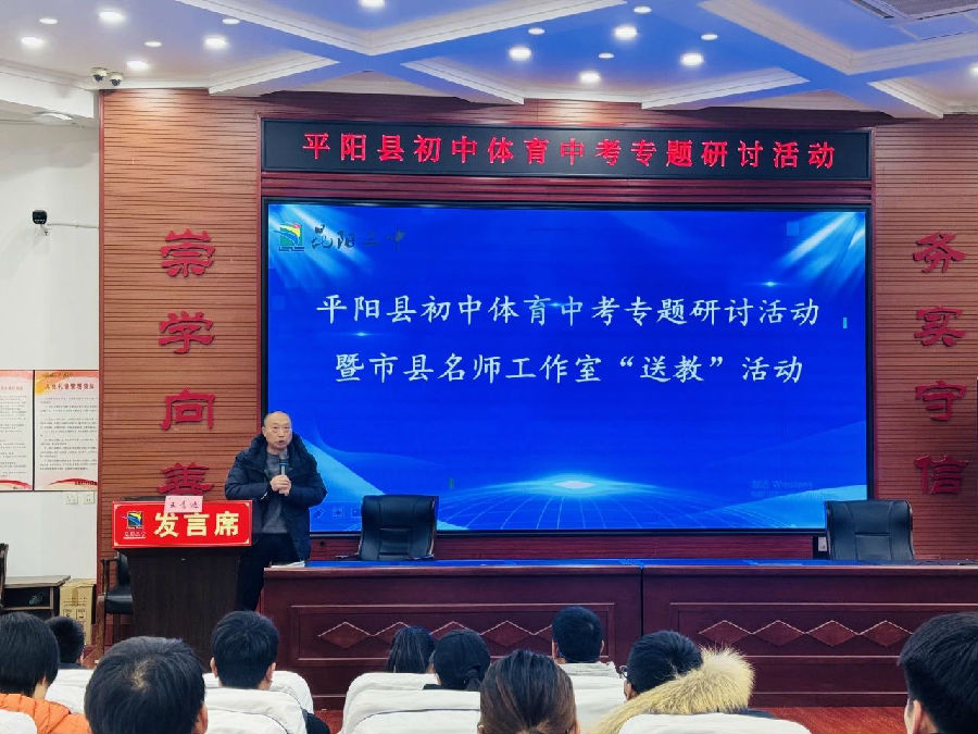 为切实贯彻课程标准,深度践行“三有四化”课堂教学新样态,全面提高县域初中体育中考教学质量,充分发挥市县名师的引领作用,助力教师专业素养提升,12月26日至27日,平阳县初中体育中考专题研讨活动暨市县名师工作室“送教”活动在平阳县昆阳镇第三中学成功举办。