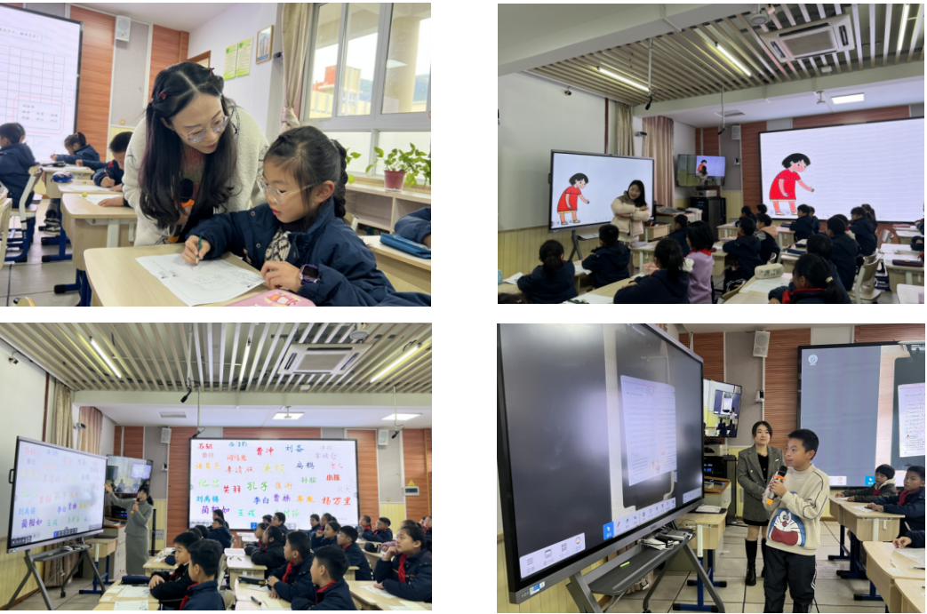 周双双老师执教低段创意表达指导课《一条神奇的被子》,引导学生在同伴的回答中对“神奇的被子”展开自己的奇思妙想。董敏敏老师执教中段创意表达课《糟糕,我缩小了》,以问题“缩小以后会发生什么”为导向,并通过多元评价,增强了学生表达的信心。项金燕老师和周婷婷老师合作执教高段创意表达课《假如一位古代人来到了我们面前》,鼓励学生大胆想象,趣写古人来到我们面前的情形,进一步引导孩子们赏析佳作,学习表达自己的真实想法。