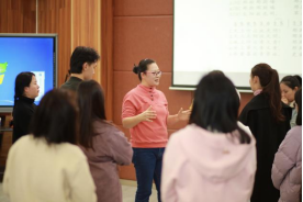 活动下半场,各地区音乐教师在陈老师的指导下,进行了一场别开生面的音乐剧创作工作坊。他们分成若干小组,利用嗓音、动作和打击乐,创作并表演了各自的原创音乐剧。每个小组的表演都充满了创意和激情,受到了陈老师的高度表扬,并鼓励老师们在未来的音乐教学中继续探索和创新。