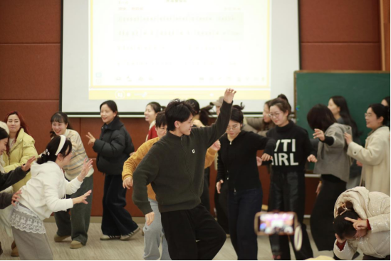 活动上半场,陈老师详细讲解了如何利用嗓音、动作和打击乐这三种工具,构建原创音乐剧。她指出,嗓音是音乐表达的基础,动作能够增强音乐的感染力,而打击乐则为音乐增添了节奏感和层次感。通过这三种工具的结合,学生可以在音乐剧中充分发挥自己的想象力和创造力。