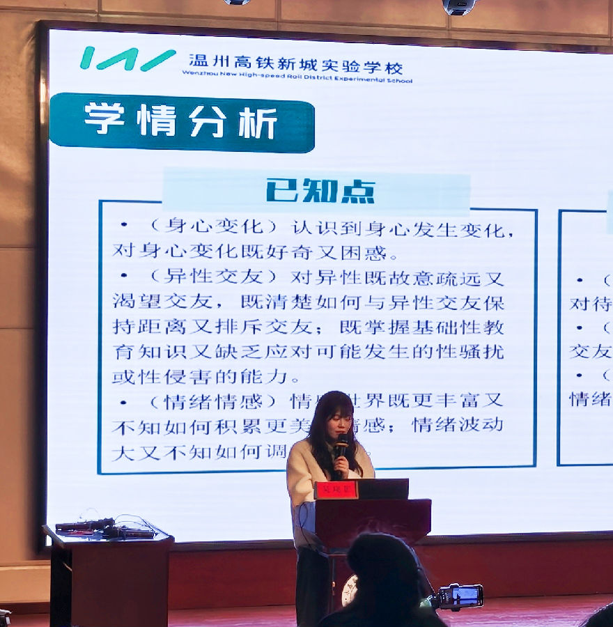 永嘉县实验中学林礼琼老师执教《学会自我保护》一课,以“拥抱互动”破冰导入,通过学生真实反馈引出青春期性心理话题,围绕“如何满足性好奇”、“如何辨别性越界”、“怎么应对性侵害”三大子议题,精彩展示“黄腔哥”情景剧,引导学生辩证讨论“性好奇”“性越界”“性侵害”等问题,探究应对之策,整堂课以情境为链、以思辨为核、以行动为锚,为新教材新使用提供了“有温度、有深度、有力度”的范本,让学生在沉浸式体验中领悟自我保护的实践意义。