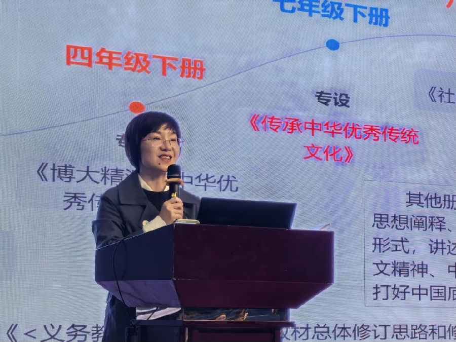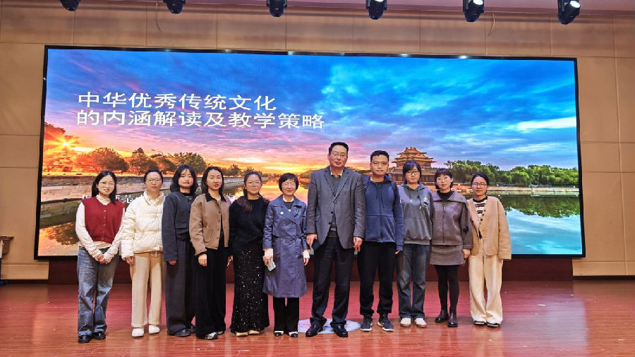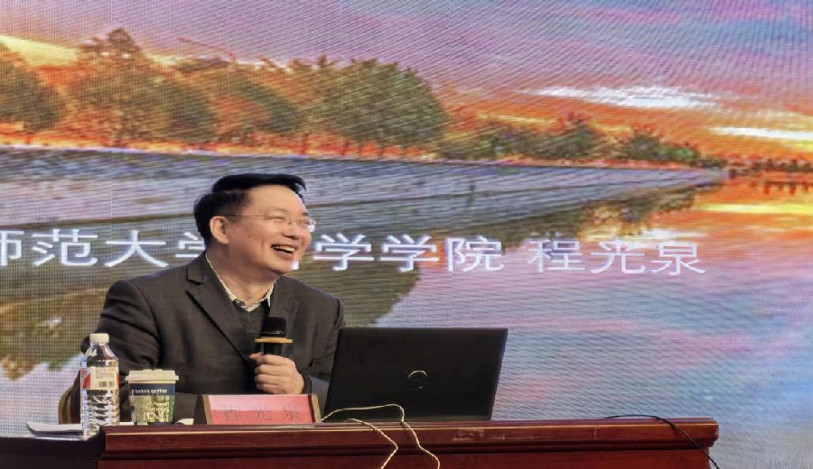 北京师范大学程光泉教授以《中华文化的内涵解读及教学策略》为题,从传统文化教育的宏观背景、教材中传统文化的内容逻辑、教材中传统文化内涵解析以及传统文化的教学策略四个方面展开讲座。程教授从“国学与国家发展”的关系切入,强调:“国学不兴,国不能自立”,同时明确指出,仅有国学是远远不够的,必须与现代科学和创新精神相结合。