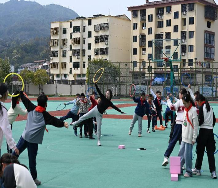 下午由李双双老师执教四年级《发展跳跃能力的练习与游戏》,李老师用哪吒舞蹈导入本课,通过有趣的“寻找乾坤圈”游戏,帮助学习在欢乐中充分热身,在学练中教师用任务单引导学生在融洽的分组合作中,勇闯——哪吒练功,跳过礁石,挑战龙王,既提高了学生的收腹提膝能力,又让学生体验到了挑战关卡成功后的喜悦。课堂教学符合当下“三有四化”的教学理念,教师教得投入,学生练得开心。