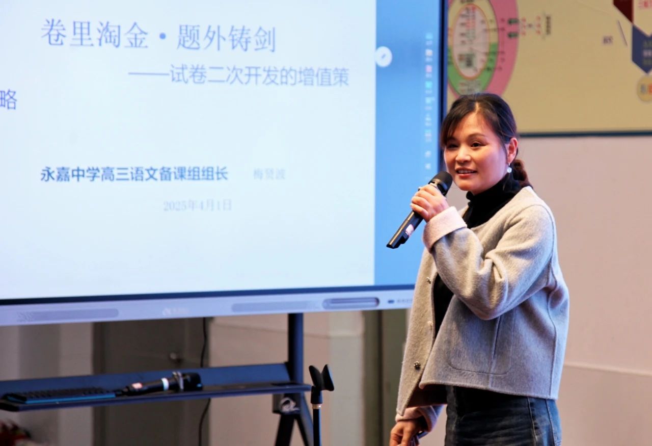 在经验交流环节,永嘉县教师发展中心陈丽老师以《有用、能用、好用、无用——复习,如何更加有效》为题,从研究真题与学情、提供支架、强化训练等方面分享了备考策略;永嘉中学梅贤波老师则结合《卷里淘金·题外铸剑:试卷二次开发的增值策略》,提出“二次开发”,绝非试卷简单的“重复利用”,而是用已有的试卷资源,针对考点和学生的薄弱环节进行再度挖掘,通过分析和改造,进行查漏补缺、巩固提升,从而实现备考资源的价值增值。两位教师的发言引发了与会者对教学方法改革的热烈讨论。