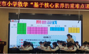 上午的教研活动在李琼琼老师执教的《乘法分配律》中拉开帷幕。李老师以匠心独运的设计,从现实情境、乘法意义、面积模型等多维度切入,引导学生深度理解分配律的本质。拼图游戏的巧妙融入,让抽象的数学律动起来,学生在“玩”中捕捉“公因数”的奥秘,在“乐”中建构数学模型,真正实现了寓教于乐、学思相融。