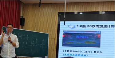 随后,卓恩悯老师以《运算定律核心素养的认知阶梯建构》为题,从学情分析到课例设计层层剖析,提出“运算律的终极目标是构建普适的规则体系,而简便性只是其‘副产品’”,这一观点引发了在场教师的深刻共鸣。模型与运算的辩证关系,在此刻变得清晰而生动。