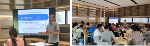 首先由来自瓯北第五中学的永嘉县初中资深科学教师李柏青老师给大家带来《初高中物理教学衔接之电磁学篇》的专题讲座。李柏青老师结合多年的教学经验,深入剖析了初高中物理教学在电学磁学方面的衔接问题。他通过生动的案例和详实的数据,为教师们提供了切实可行的教学建议,助力高中教师精准把握学情,为高中物理教学打下坚实基础。