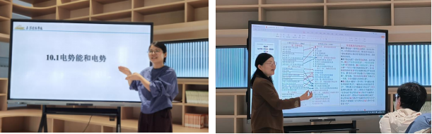 工作室成员、永临中学徐微青老师就必修3中“电能 能量守恒定律”的嘉课堂教学设计与教学建议做了分享。徐微青老师针对电能与能量守恒定律的教学内容,提出了富有创意的教学设计与建议。她通过具体的教学案例,展示了如何在课堂中有效融合理论知识与实践操作,激发学生的学习兴趣,提高教学效果。