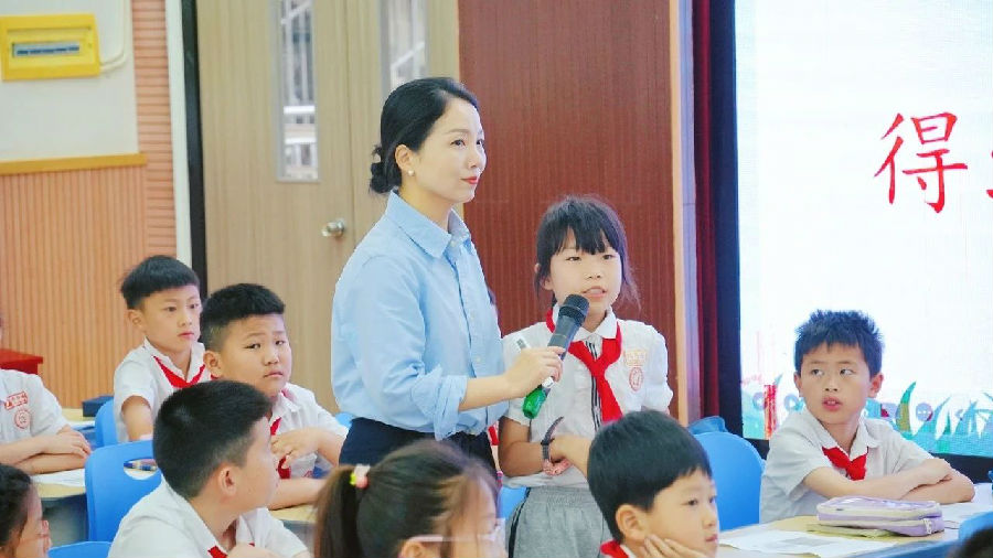 紧接着,温州市名师、龙湾区外国语小学金苗苗老师大胆突破传统复习模式,与四(4)班学生共同演绎《争做问不倒的小博士》。金老师别出心裁地以四年级下册第二单元为核心,围绕“提问—解问”这一主线,匠心独运地创设出思维列车情境。在课堂上,复原展板、解密实验室等一系列趣味十足的游戏化学习活动轮番登场,让知识在学生的探索与思考中生根发芽。