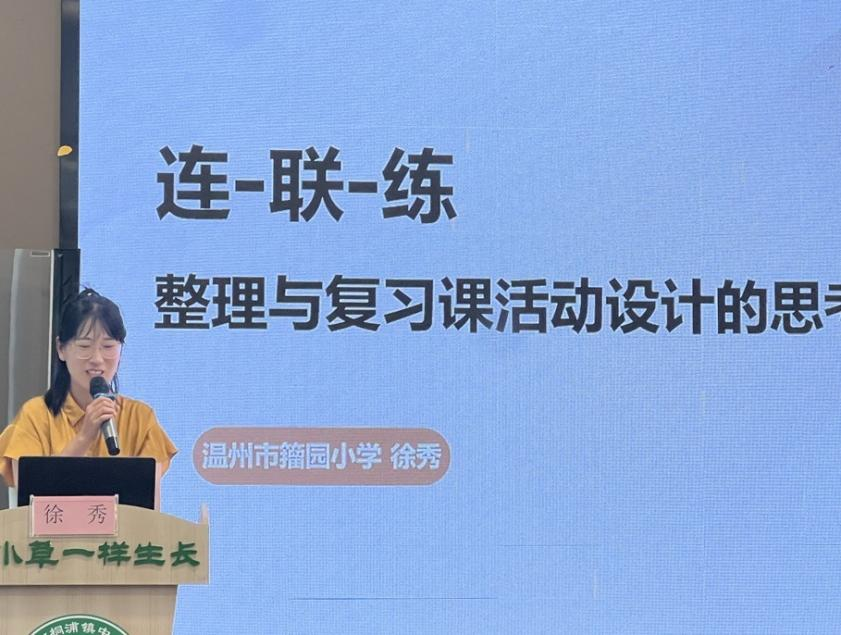 然后,温州市籀园小学的徐秀老师作《连-联-练:整理与复习课活动设计的思考》专题讲座。徐老师提出复习课的本质是结构化教学,需通过以下路径实现:1.抓本质:从单元核心概念出发,打破知识割裂;2.重关联:设计对比任务,促进知识体系化;3.破定式:利用错题分析、AI技术等打破学生思维惯性,推动深度思考;4.促生长:复习课不仅是巩固旧知,更要让学生在“关联-对比-应用”中实现能力进阶。最后,徐老师指出“连-联-练”策略,恰好呼应了袁晓萍特级教师“物以类聚、无中生有、触类旁通”的核心理念,为数学复习课提供了兼具理论深度与实践价值的解决方案。