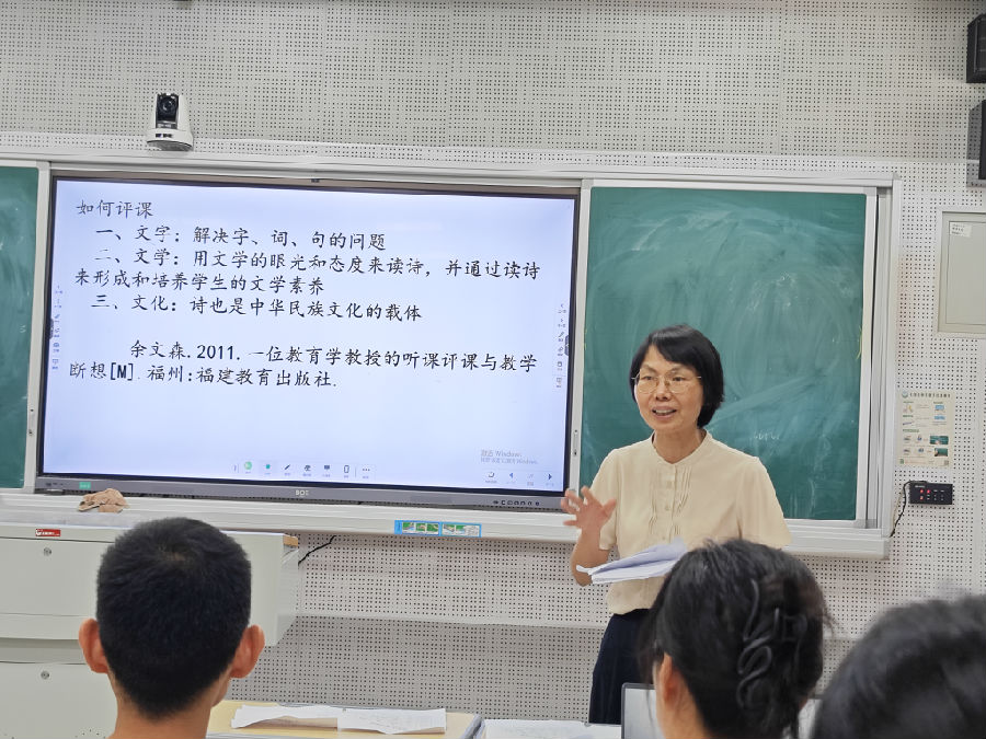 两节课后,来自温州八高的朱张好老师做了《基于测试数据的精准教学调整策略》的主题发言。他讲到测试不仅是评价工具,更是诊断学生学习问题、优化教学的重要手段。通过系统分析测试数据,教师可识别学生的知识漏洞与能力短板,实现从“以考促教”向“以测助学”的转变。精准归因是关键,需从学生层面(如知识、思维、心理)和教学层面(如输入不足、训练不精准)深入分析错误原因,避免简单归因为“粗心”或“能力差”。随后,依据诊断结果实施分层干预:针对共性问题开展专项训练,针对个体差异进行个性化辅导。最终,推动课堂转型,提升教学的针对性与实效性,真正实现数据驱动、精准施教,促进学生核心素养发展。接着,来自瓯海中学的裴军老师做了《测试视角下的文本教学》的主题发言,她先引用了余文森教授的“文字、文学、文化”评课的三个维度简单评析了两节公开课,然后从阅读教学、测试视角下的文本、测试视角下的文本教学三个方面阐述了对主题的认识,她认为测试视角下的文本教学应具有连贯性、重点性和挑战性的特征。
