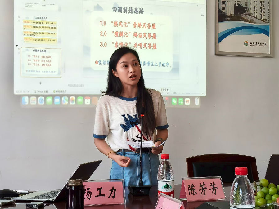 随后,获得温州市直属学校班会优质课初中组第一名的陈芳芳老师进行现场说课,以《赋能青春成长,担当时代使命 —— 关于责任主题班会设计的分享》为题,从班会目标设定、环节设计、活动组织等方面,展示了如何通过生动有趣的形式,让责任意识深入学生内心,引导学生在实践中感悟担当的意义。
