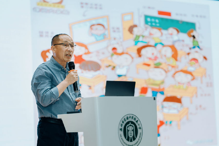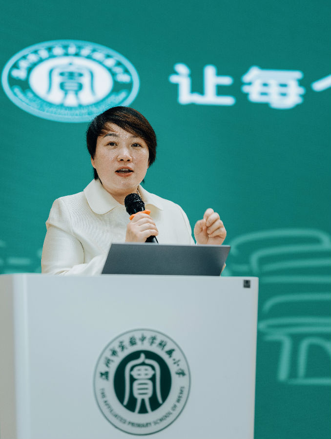 接着是温州市实验中学附属小学黄又绿副校长带来《撒换体育:每天2小时综合体育活动的实践与思考》专题讲座。黄校长从构建教育理想国的愿景谈起,阐述了学校为何要以“撒欢体育”为品牌,分享了从晨间撒欢俱乐部,到课间撒欢市集,再到每天一节体育课,打造“撒欢体育”让每个孩子从容不迫地长大的实践经验。