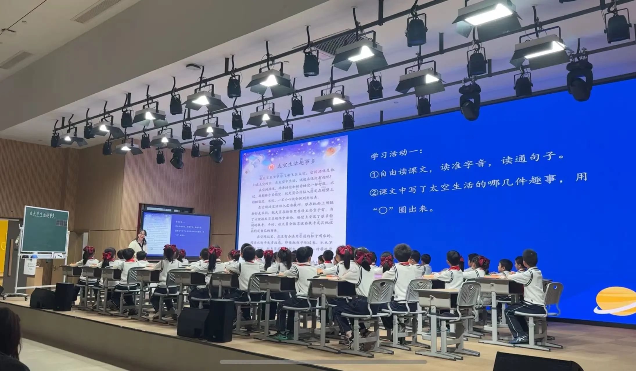 温州市市府路小学张弛老师的《太空生活趣事多》这堂课以核心素养为纲,凸显三大创新:其一,情境创设与任务驱动有机融合,在真实语境中实现学法渗透,通过关键句提取训练学生结构化阅读思维;其二,组块识字与语段教学双线并行,既运用字理规律突破字词难点,又借互文对照揭示文本表达秘妙;其三,资源开发张弛有度,补充资料既填补认知空白又触发探究兴趣,使语言理解与运用始终在深度学习中螺旋上升。