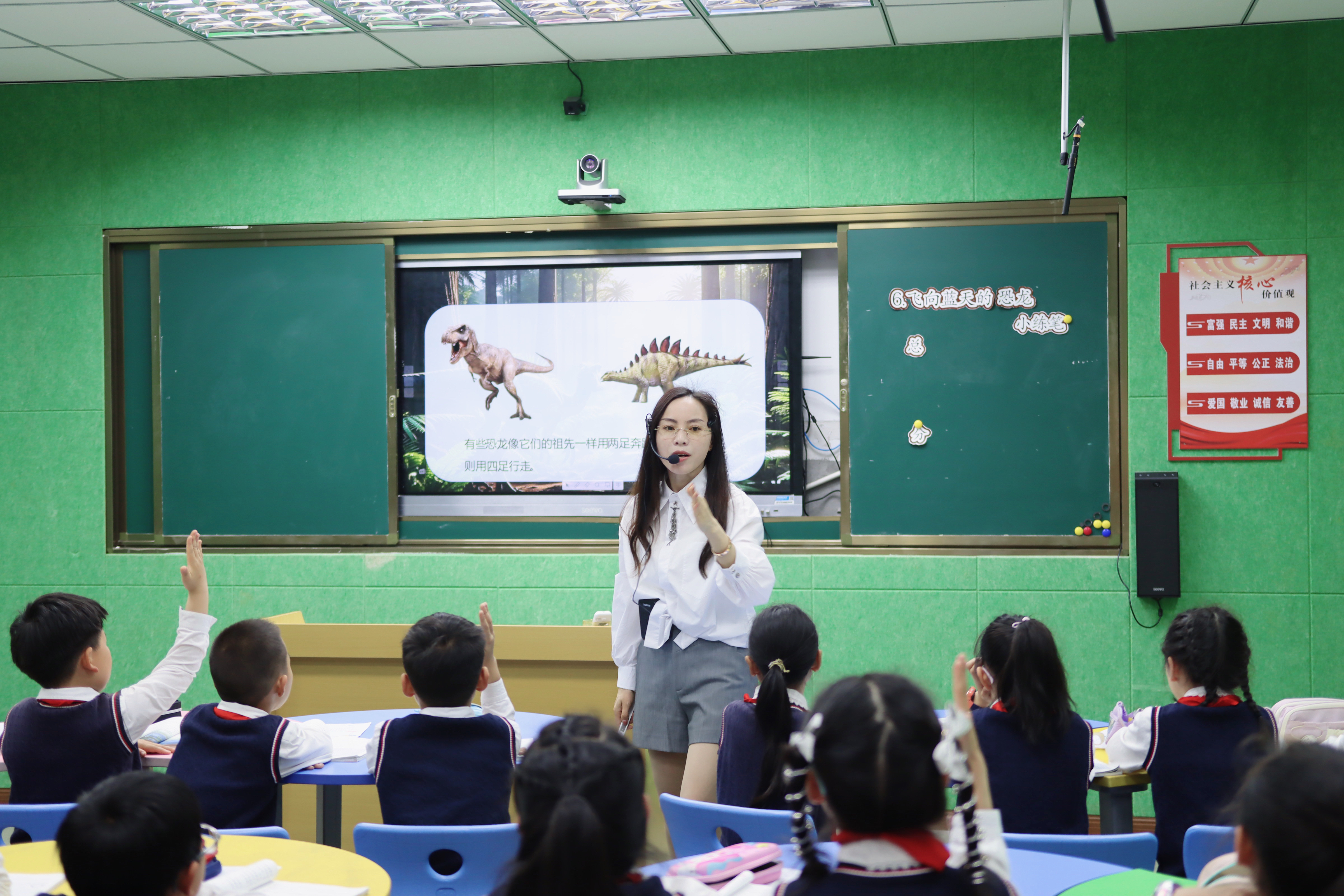 上午第一节课由杨雅涵老师执教《飞向蓝天的恐龙》小练笔。杨老师带领学生从课文选段切入,深入剖析写作方法。课堂上,学生通过读、析、思、练四个步骤,发现总分构段、做比较、用词准确等技巧,积极参与头脑风暴,讨论可描写的事物及角度。在实战环节,学生运用所学方法进行仿写,相互分享、评价习作。整堂课不仅让学生掌握了写作技能,更激发了他们的创作热情。