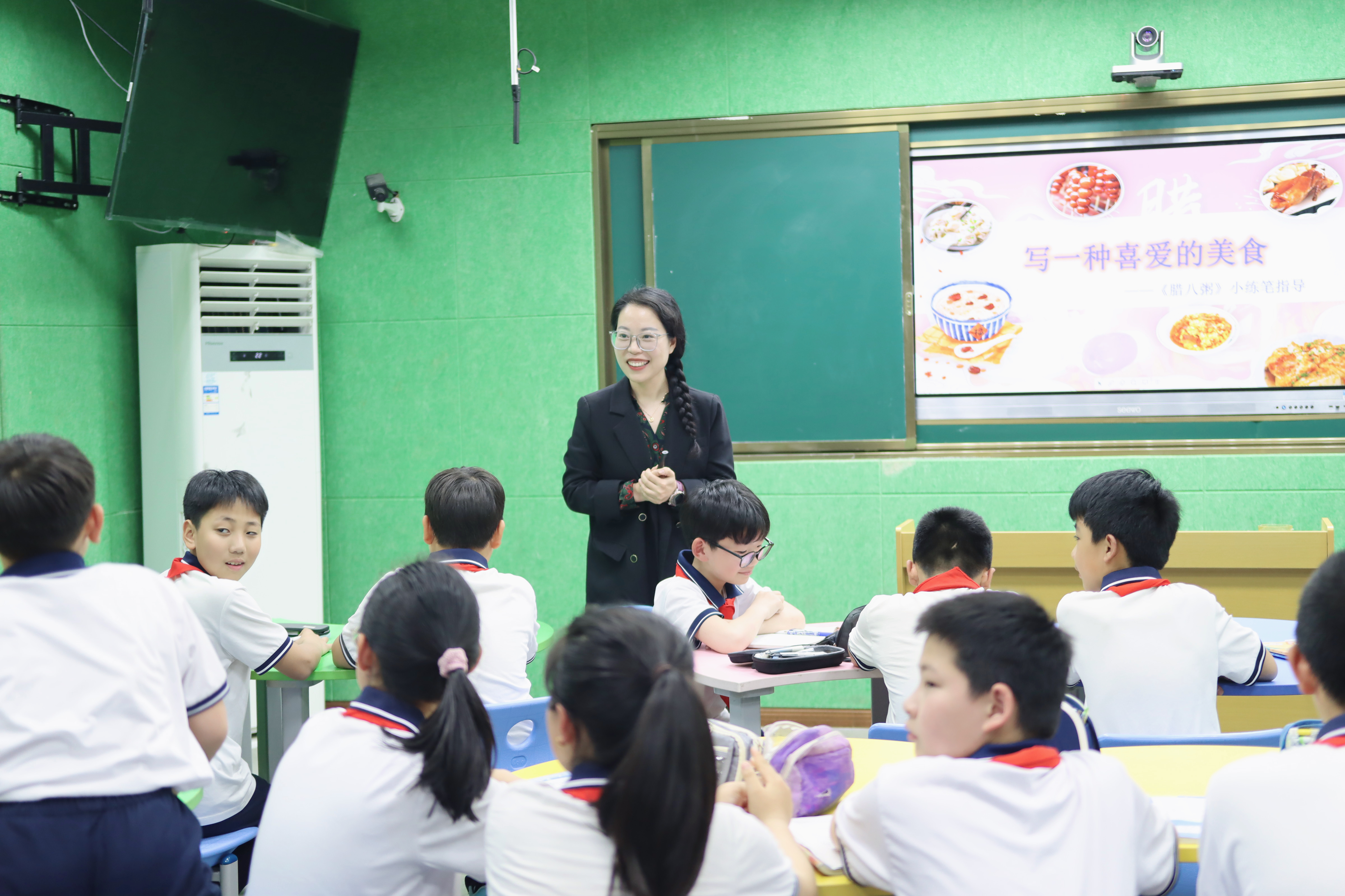 第二节由张新新老师执教《腊八粥》小练笔。一碗热气腾腾的腊八粥,不仅是冬日里的暖心美味,更藏着语文写作的“秘密武器”!张新新老师以沈从文的《腊八粥》为引,带领学生开启了一场“色香味俱全”的写作之旅。通过美食大搜索,勾起了学生的美食记忆。在小组合作中,引导学生发现写作小妙招。课堂尾声,老师发起了“美食排行榜”趣味活动,鼓励学生用所学技巧为最爱食物“打榜”。