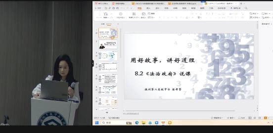 5月16日,聚焦“大思政课”建设的第二场活动通过钉钉平台开展线上研讨。温州市第二高级中学陈希贤、温州市第五十八中学李俊杰两位老师进行《法治政府》说课展示,阐释课堂教学中如何善用中国特色社会主义建设伟大成就和生动实践的鲜活素材,实现理论和实践的对接,单茹茹老师作精彩点评。随后,单茹茹老师结合温州市第十四高级中学叶佳晨老师"综合探究"实践教学设计案例,阐明“大思政课”视域下,如何利用好教材“综合探究”实现学科内容与社会实践的深度整合,并要求全体学员通过整合校内外资源积极探索实践教学路径,实现思政小课堂与社会大课堂的对接。