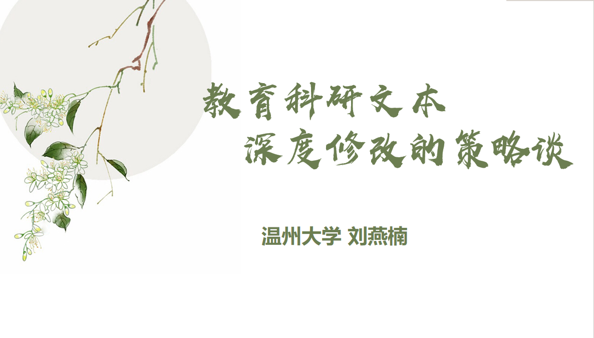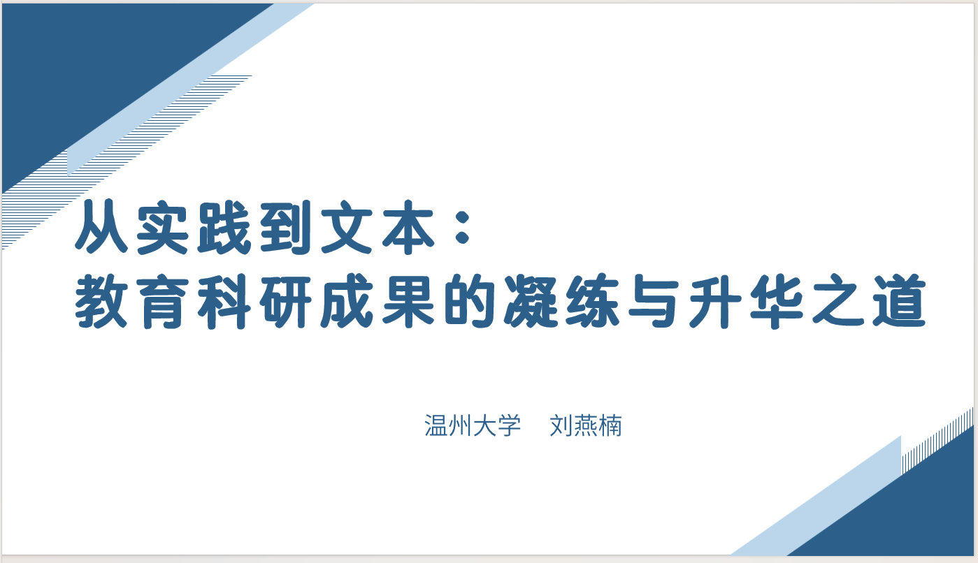 本次活动特邀浙江省“之江青年学者”、温州大学教育学院教授、博士生导师、教育理论与政策研究中心主任刘燕楠作专题讲座《从实践到文本:教育科研成果的凝练与升华之道》与《教育科研文本深度修改的策略谈》,并进行课题指导。