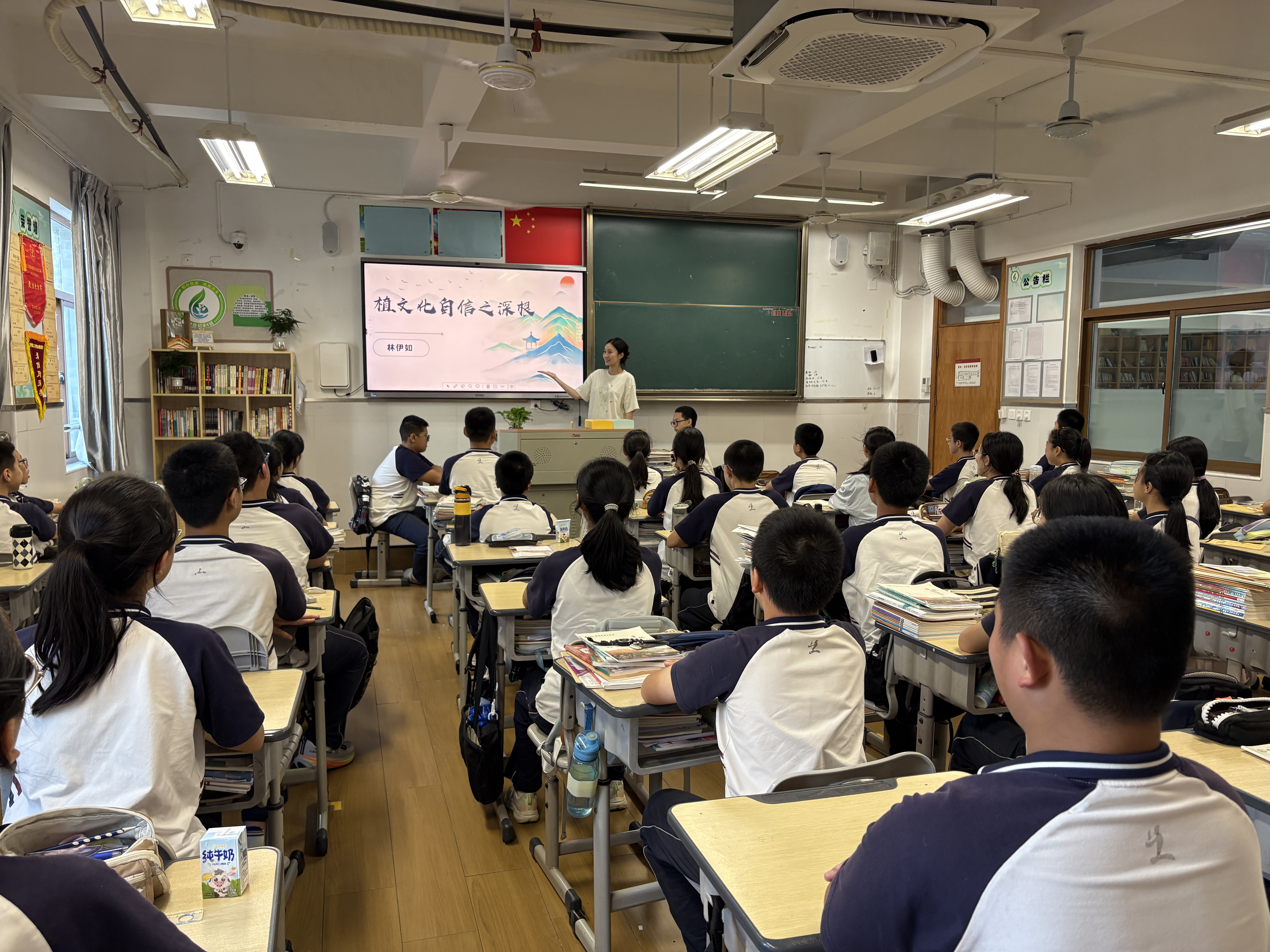 随后进入 “集智汇力,互动共生” 环节。工作室成员林伊如老师带来主题班会《植文化自信之深根》展示,以 “文化自信” 为核心,通过鲜活的案例、互动的设计,将文化育人理念融入班会环节,展现了扎实的班会设计与实施能力。展示结束后,谢丽晓老师从 “目标定位、环节逻辑、育人实效” 三个维度进行专业点评,既肯定了班会中 “文化渗透自然”“学生参与度高” 的亮点,也提出了 “优化环节衔接、强化家校联动伏笔” 的改进建议,让在场班主任在 “展示 + 点评” 的互动中深化了对主题班会设计的理解。