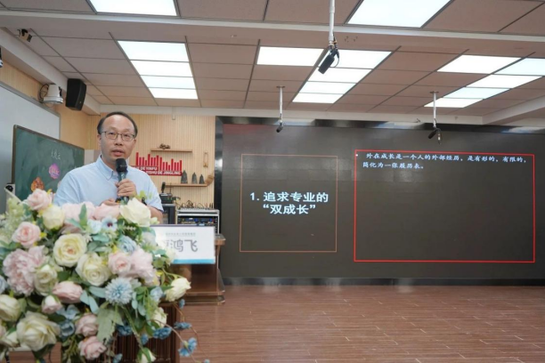 语文老师如何更好更快地成长呢?最后,曹老师用10个“坚持”跟大家分享教师的专业成长路径,明确了未来应该前进的方向。他表示教师需要追求专业的“双成长”,并做到以下“坚持”:坚持对教育常识的尊重和坚守,坚持追求教学的双“分数”,坚持工作即修行的理念,坚持每天读一点,坚持每周写一点,坚持持续的专注与精进,坚持自己的爱好并至少结交一位对自己精神成长有帮助的人,坚持锻炼身体成为“五者”。他的10个“坚持”不仅指明了专业成长的方向,更提供了践行的动力和勇气,引导在座老师们在未来教育教学工作中,不断追求专业精耕、职业坚守。