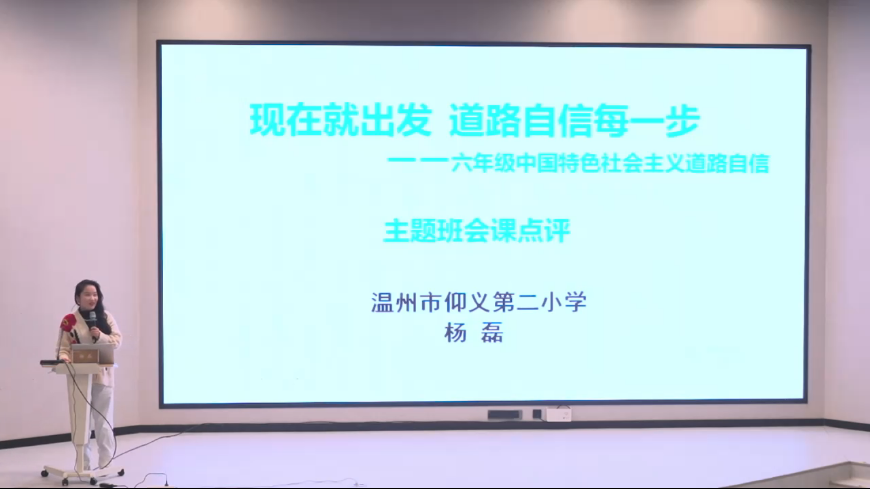 活动分为四个环节。首先由杨琴琴老师进行课堂展示,为大家带来了一节精彩的主题班会《现在就出发,道路自信每一步》。杨老师通过古今交通方式的对比,让学生直观地理解祖国发展中的困境和破局,感受到如今祖国的发展和富强离不开科技创新和经济腾飞,引导学生树立强大的民族自豪感和使命感。