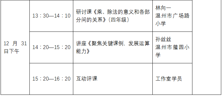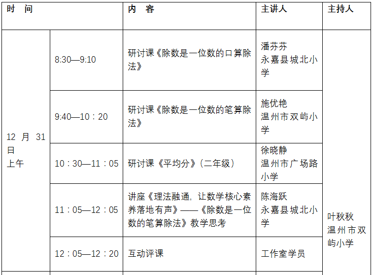 温州市 夏明燕 名师工作室于 2024年12月31日 08:30:00时到2024年12月31日 16:20:00时