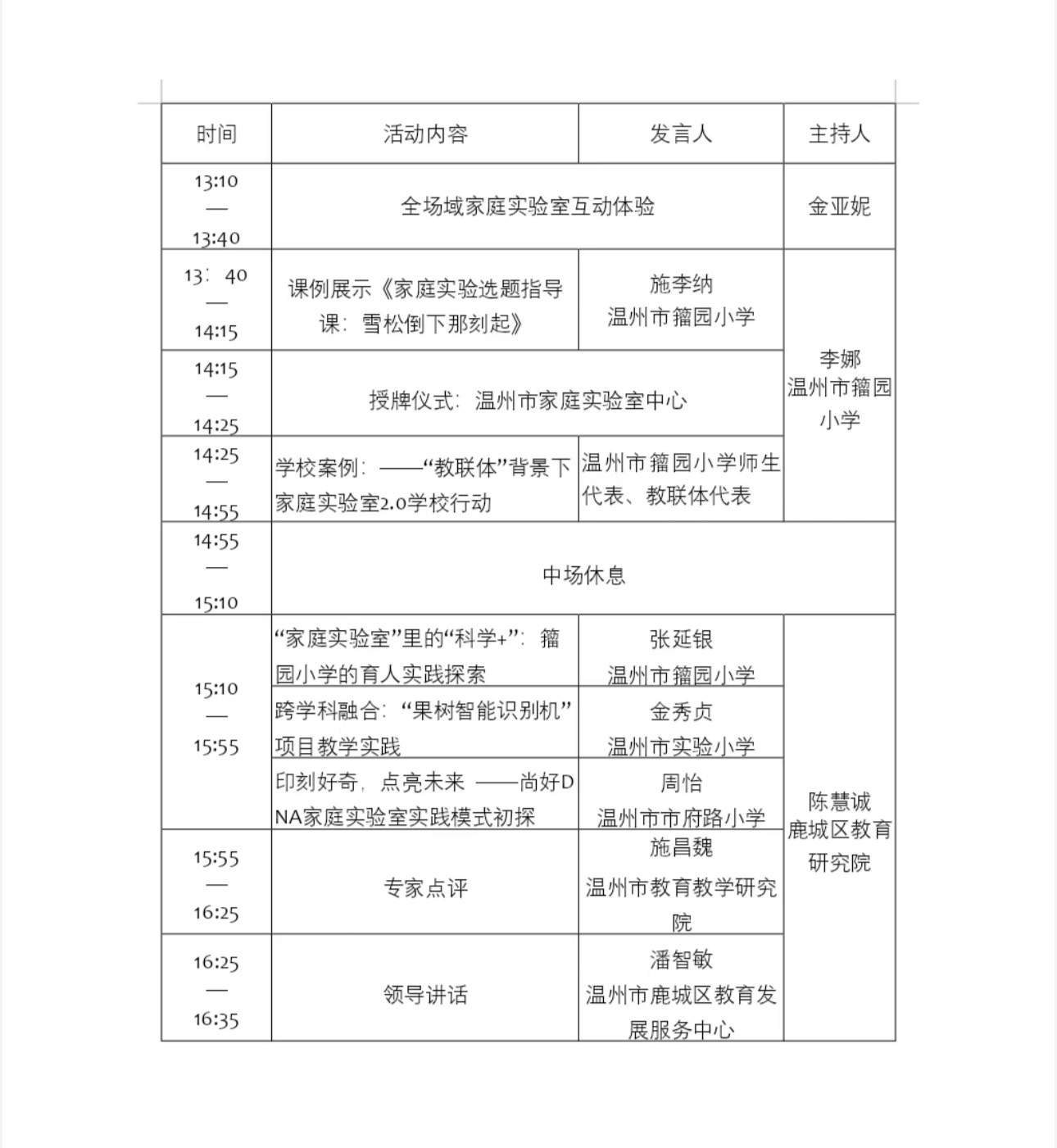 在 温州市籀园小学举行活动,时间 0.5 天。