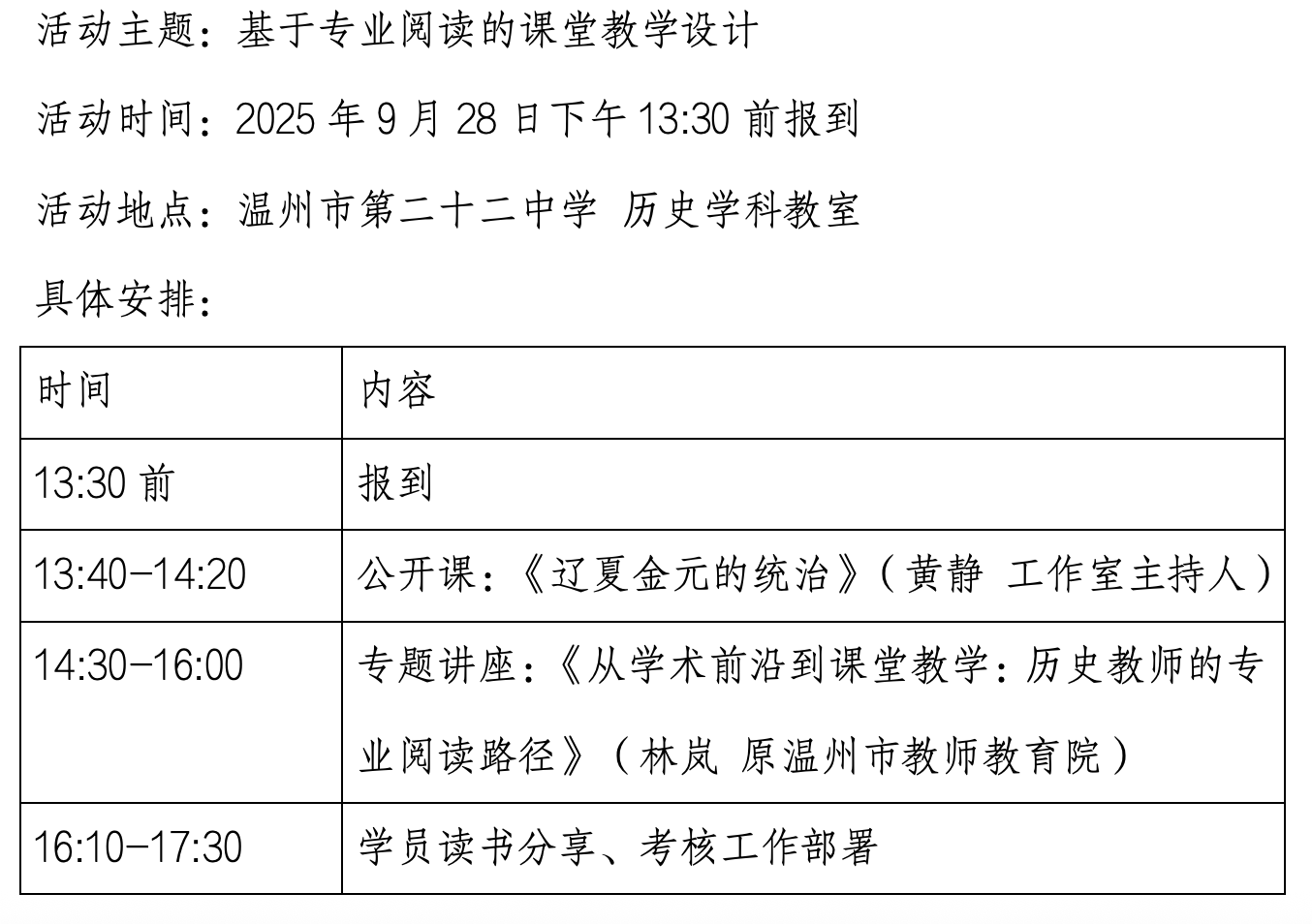 关于举行温州市高中历史黄静“名师送教”工作室第14次活动的通知