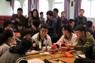 2014年4月25日胡玫名师工作室到杭州与陈锋智慧空间站工作室一起活动,首先听了一节杭州康桥中学的葛元钟老师的《拍一张好照片》光学复习。葛老师通过任务驱动,任务一:设计实验,使物体所成的像部分清晰,部分模糊。任务二:设计实验,说明照相机如何改变照片的明暗。任务三:怎么拍远处的物体?任务四:照片的左右位置互换么?通过这四个任务使学生明白了拍一张照片基本原理,同时也很好复习凸透镜成像的原理,激好了学生的学习热情. ?xml:namespace>?xml:namespace>