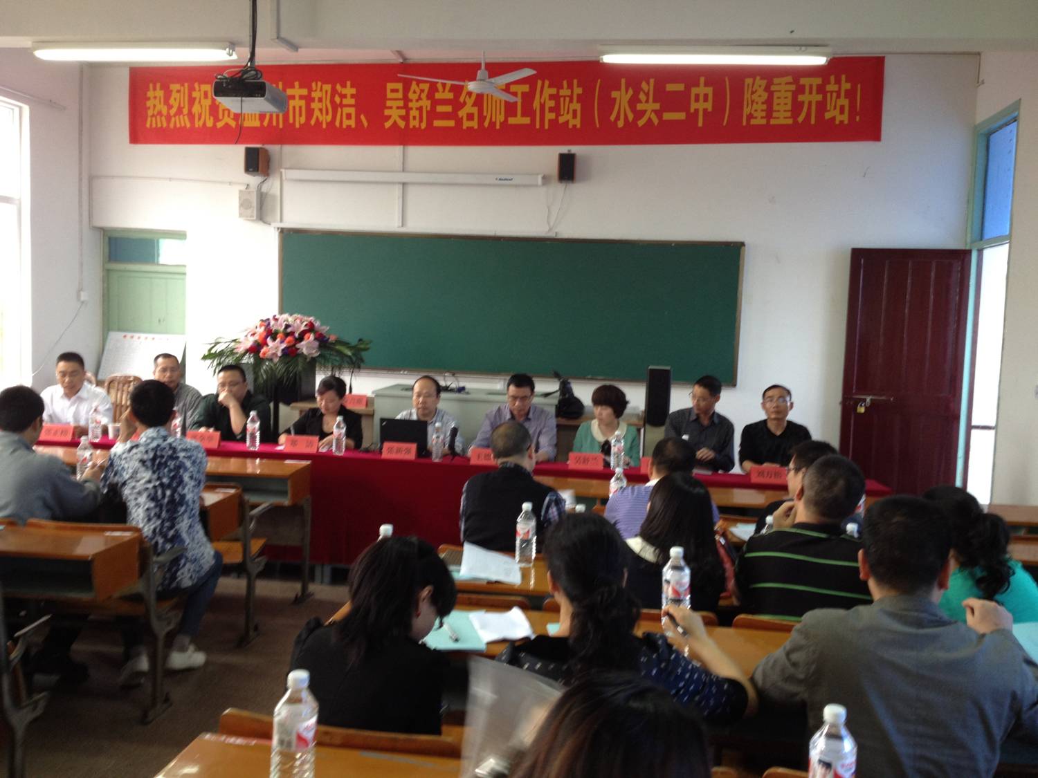 活动开始,张新强主任为温州市郑洁、吴舒兰名师工作站在水头二中落成授牌,并对“名师工作室”变为“工作站”的意义作了详细解读。同时,张主任希望各工作站学员“向名师学习、向书本学习、学以致用”。水头二中刘万榕校长对此次名师工作站选择在该校建站表达了感激之情,并承诺学校将倾己之所能,为名师工作站的开展提供充分的支持。工作站站长郑洁、