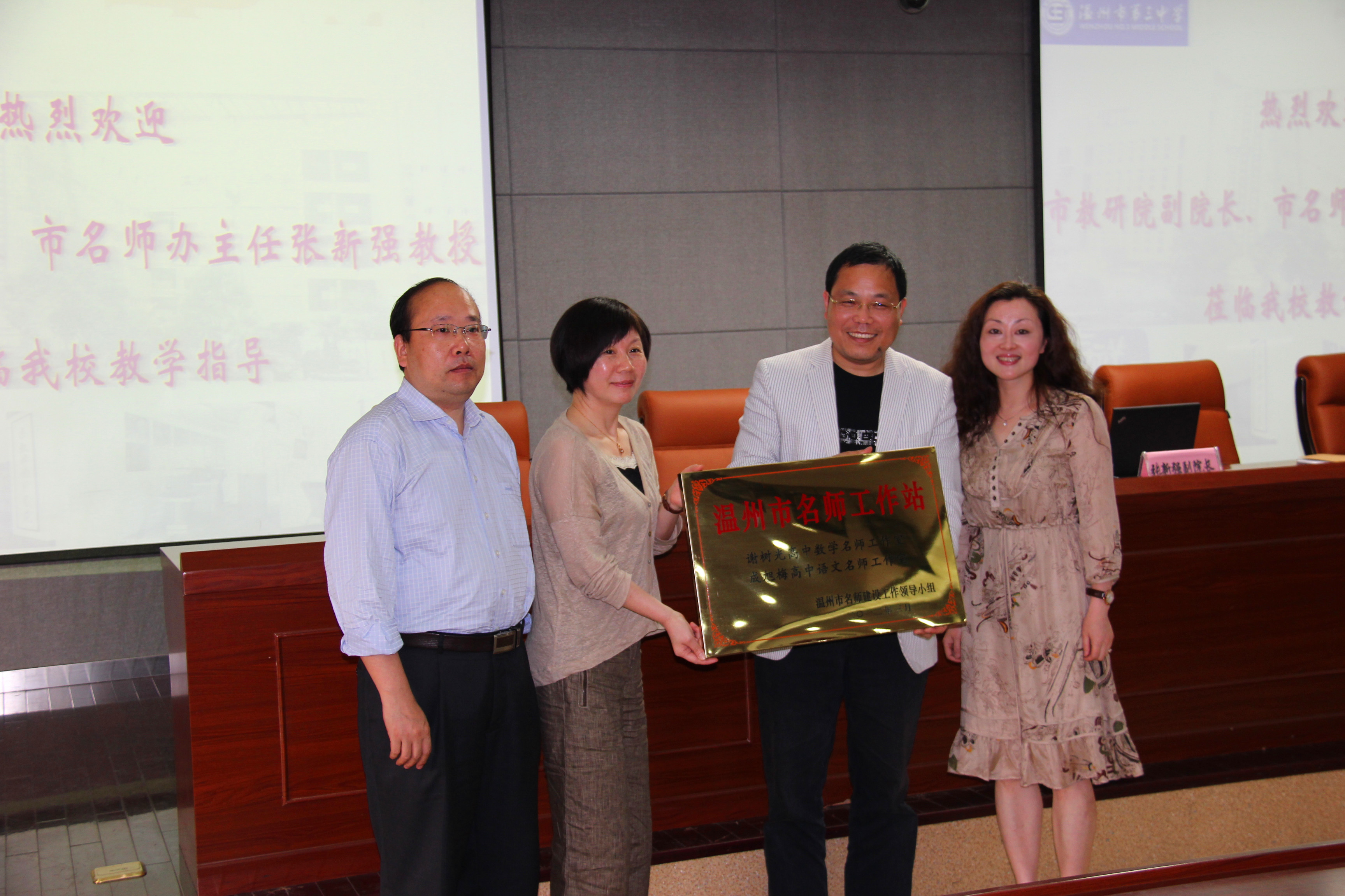 最后,张新强副院长代表温州市教育局、温州市名师办向温州市第三中学和工作室主持人授牌。