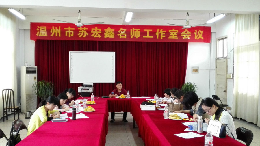 2015年10月23日,秋风飒爽,温州市苏宏鑫名师工作的导师和学员又准时相聚于绿树茵茵的苍南县钱库第二高级中学。