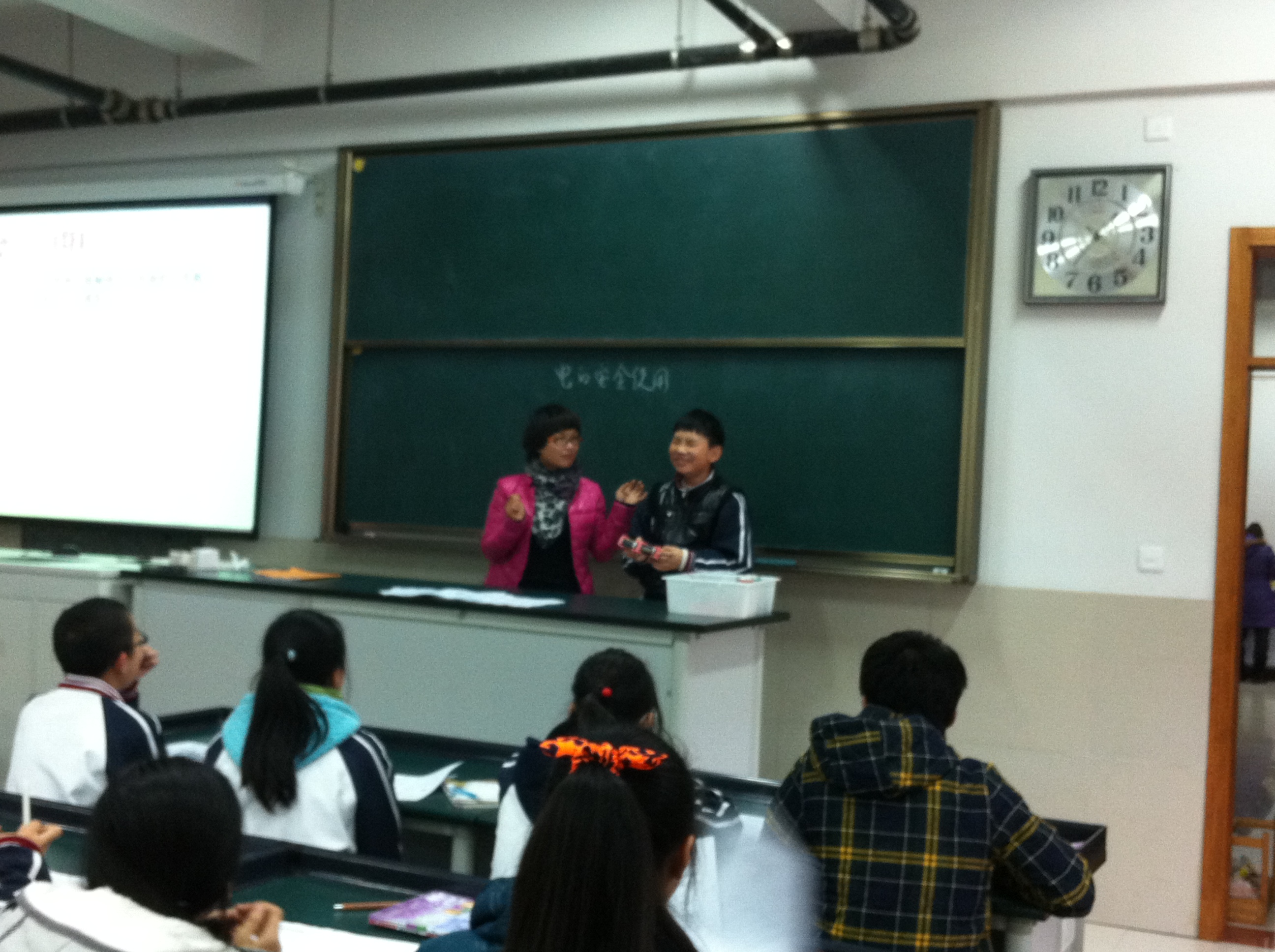2012年月12月20日下午,胡玫名师工作室活动第七次活动在温州三中如期举行。本次活动以课堂教学探讨为主题。由潘晓清老师执教的《电的安全使用》和吴秀霞老师执教的《溶液复习》为全体学员展示了两节不同课型的课,供学员们学习与研讨。潘老师设计的《电的安全使用》从学生各种不同的体验入手,让学生在玩的过程中了解到电的安全使用的重要性,从而展开学习。她设计的“温柔电击”、“千人震”和“电火花”三个实验不仅将温三中学与做特色的电学仪器搬到了课堂上,还开发出了让全体学生都能参与并感受的“千人震”实验,大大提高了学生学习的趣味性和积极性,让在座的老师们大开眼界。吴秀霞老师的复习课以学生实验和知识网络结构图为本节课的主要授课方法,进行了溶液这一部分的复习。她设计的知识网络结构图内容详细,布局合理,各知识点之间的关系清晰,让学生对本章的相关内容一目了然,值得学习。