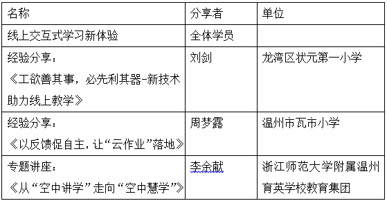 特殊时期,特别需求,特别研修。在突发疫情的困扰下,“寒假”变“暑假”,线下变线上,两个多月的线上课堂,从“空中讲学”走向“空中导学”,再到“空中慧学”,如何更好的实现“空中慧学”,特举行“基于空中课堂让学习真实发生”的研修活动。