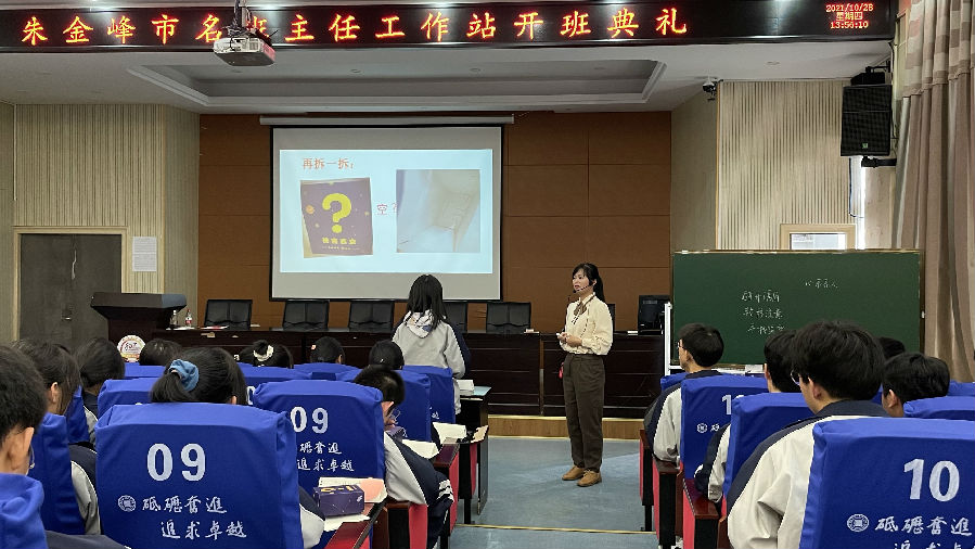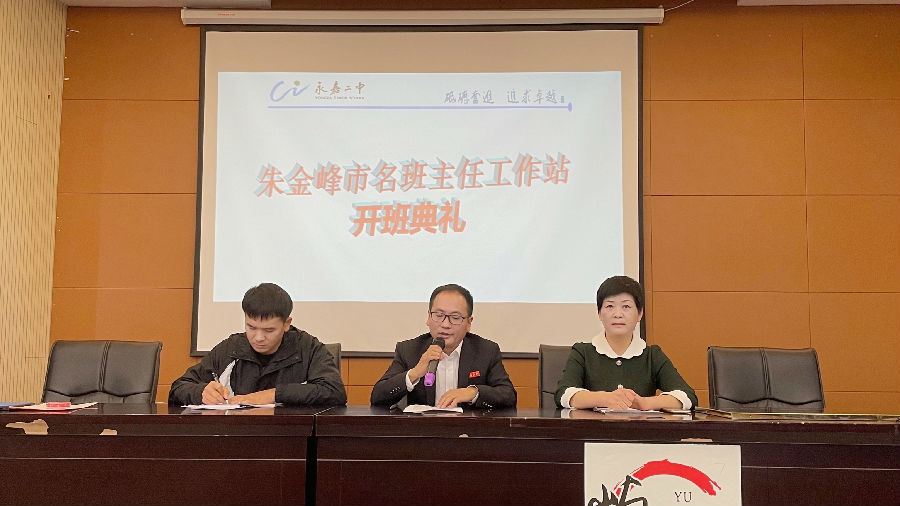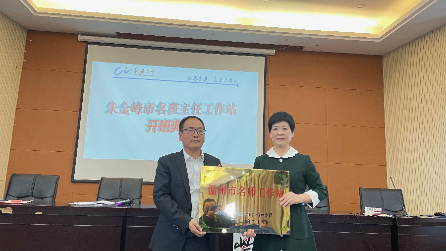 2021年10月28日下午,温州市朱金峰名班主任工作室在永嘉二中的报告厅举行简短而又隆重的开班仪式活动。浙江省特级教师、正高级教师陈建仁,浙江省正高级教师、温州市名班主任、工作室主持人朱金峰,永嘉二中校长金志彬,政教处主任王良芝,团委书记戴自力,工作室成员以及永嘉二中的全体班主任以及部分任课老师参加了此次活动。本次活动由王良芝老师主持。