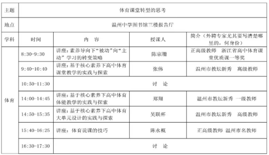为更好地推进“名师送教”活动,充分发挥名师、骨干教师引领作用,兹定于11月26日举行温州市陈永概体育“名师送教”工作室第三次活动,现将具体事项通知如下: