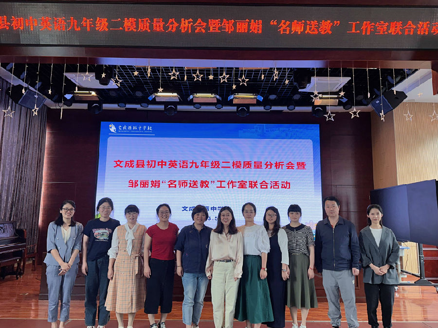 五月微风轻柔,五月学习正当时,五月更是中考冲刺进行时!5月23日邹丽娟“名师工作室”走进文成县振中学校,邹老师带领名师班老师参加文成县九年级英语中考二模质量分析会。会议开始,文成县教育研究培训院副院长兼英语研训员郑媛媛老师表达了对邹老师到来的热烈欢迎!并要求所有与会九年级老师认真聆听、积极参与研讨,向专家学习并学以致用。