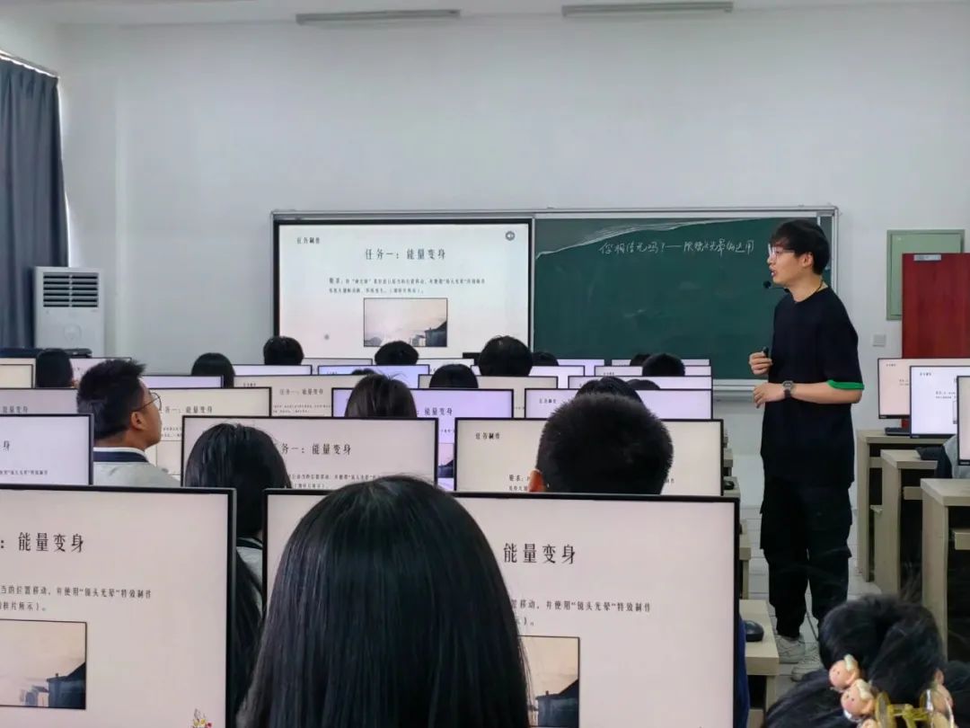 在上午的课堂教学活动中,张灿老师的《你相信光吗?——Pr镜头光晕的运用》以同学们都喜欢的奥特曼为切入点,通过“能量变身”→“闪亮登场”→“‘打’完收工”等任务,让学生掌握镜头光晕的使用,并理解镜头光晕与黑场结合使用的原理。整堂课氛围轻松,学生学习积极性很高,教学成效显著。