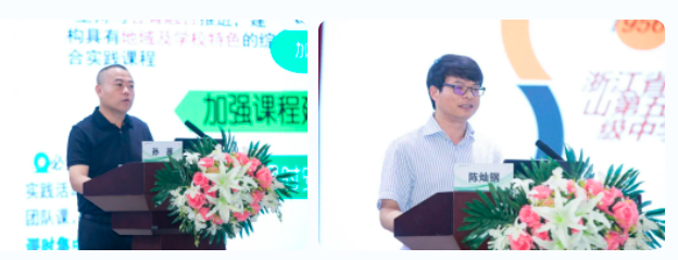 杭州市长河高级中学的陈灿钢副校长分享《从“看见”出发,促五育融合》的学校探索。学校以历史、文化、资源为土壤,课程规划体现“从看见出发、让学生成为自己学习的教师,促五育融合、使真善美成为连接学生和世界的桥梁,借课程建设、把综合实践成为学校和学生相互成就的孵化器”三方面特征,并通过综合实践活动课程优质化、实践活动课程化、学科学习项目化落实实践育人,也推动了学校整体发展。