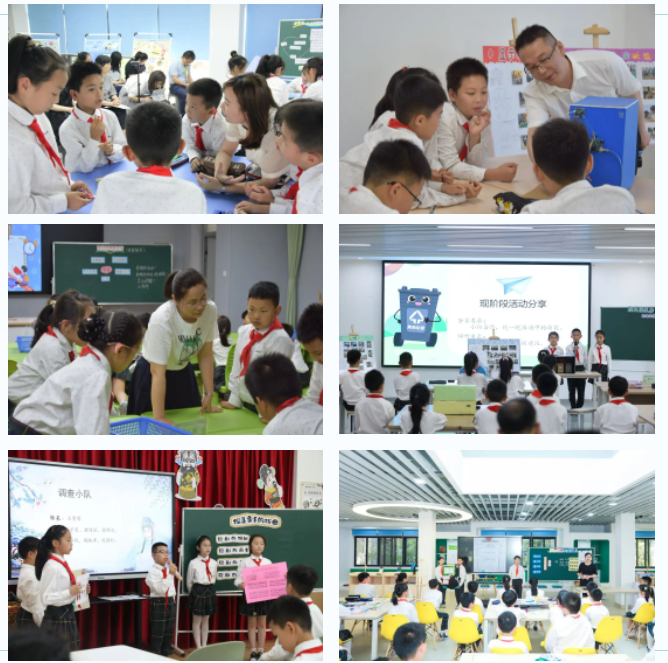 研讨课环节,王佳利、缪舒平、杨国红、黄建炜、泮梦佳五位综合实践活动教师呈现了《探寻家乡的戏曲》《小小亚运志愿者》《课间活动我观察》《校园垃圾房的功能改进》《教室用品小改进》融合市心小学校本资源开发实施的省编活动手册主题研讨课。